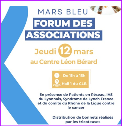 Florence Guillot, présidente, et Vincent Mugnier, trésorier de l'Association Syndrome de Lynch France, vous attendront dans le Hall 1 du Centre Léon Bérard et vous pourrez échanger avec eux. TELECHARGEZ ICI L'AFFICHE DE...